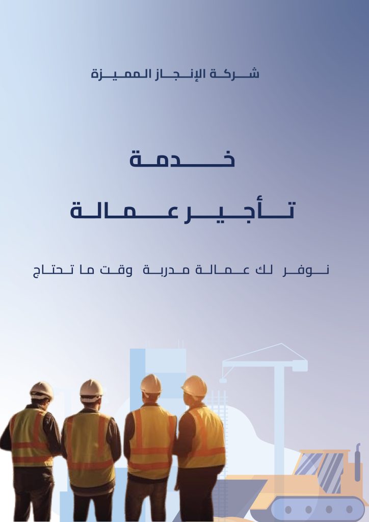 • توفيـر عمال بناء: عمالة مدرّبة ومؤهلة للعمل في مختلف مراحل الإنشاء، بدءًا من أعمال الحفر والصب، وصولًا إلى التشطيبات النهائية، مع الالتزام بمعاييـر السلامة والجودة.