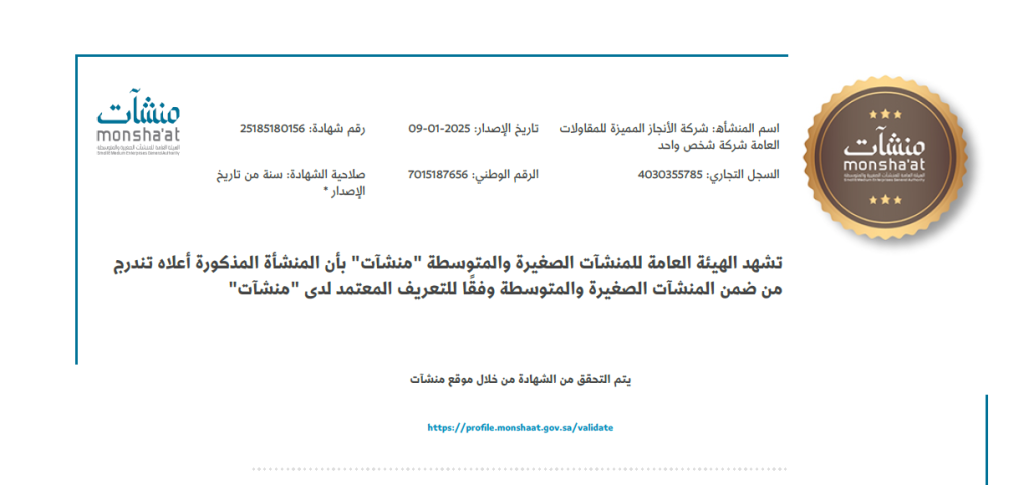 نلتزم بالجودة، السـرعة، والكفاءة العالية في كل ما نقدمه، ونعمل لنكون الخـيـار الأول لعملائنا في الممـلـكـة العـربـيـة السعـوديـة.